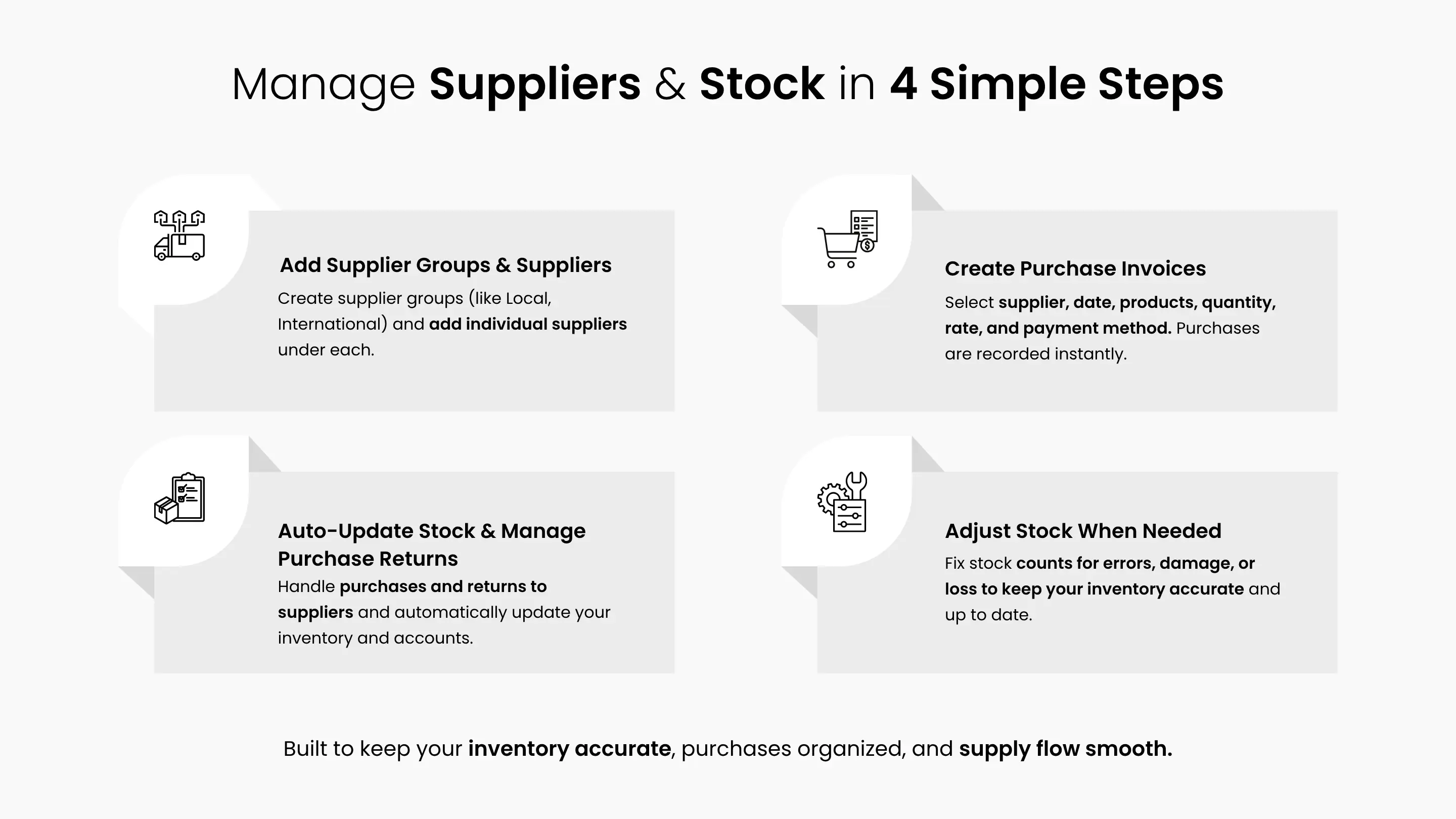 Record sales, manage expenses, and stay on top of stock.